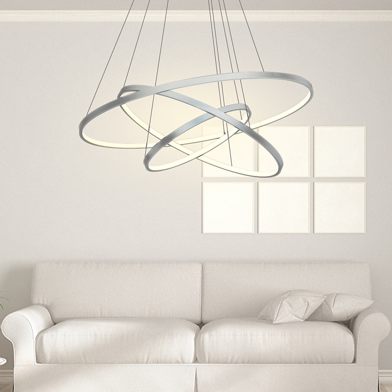 3-Light 80/60/40/20 cm LED Pendant Light Metal Acrylic Ring Circle Design Dimmable Painted Finishes Modern 90W/113W 3-Rings 4-Rings ONLY DIMMABLE WITH REMOTE CONTROL 59