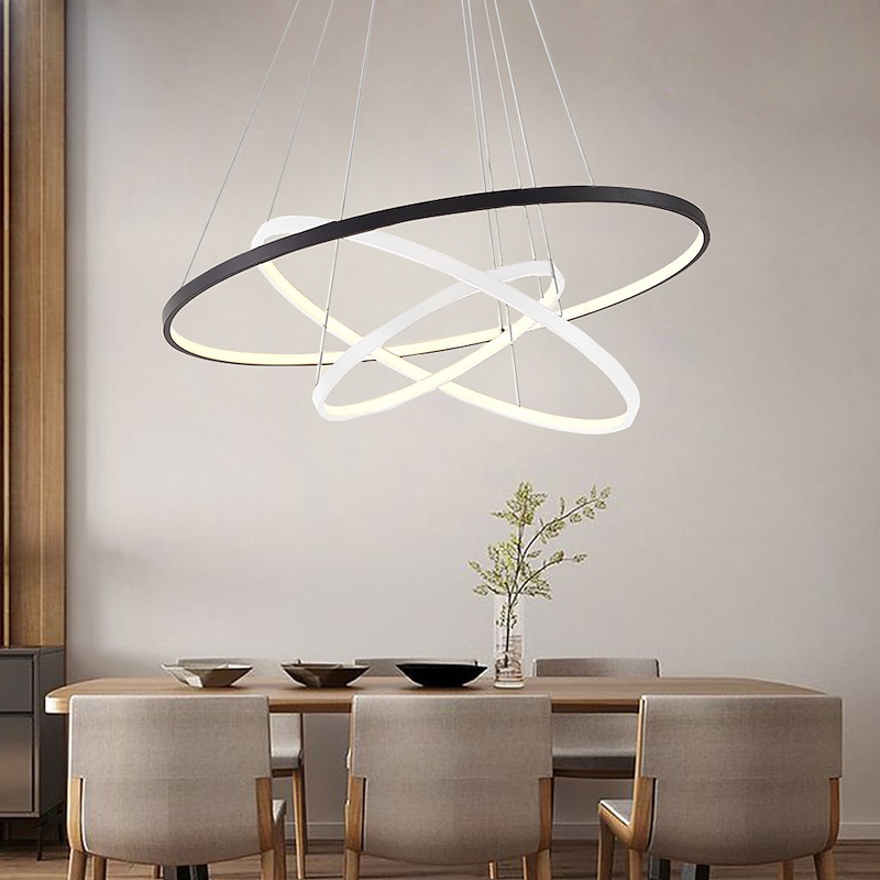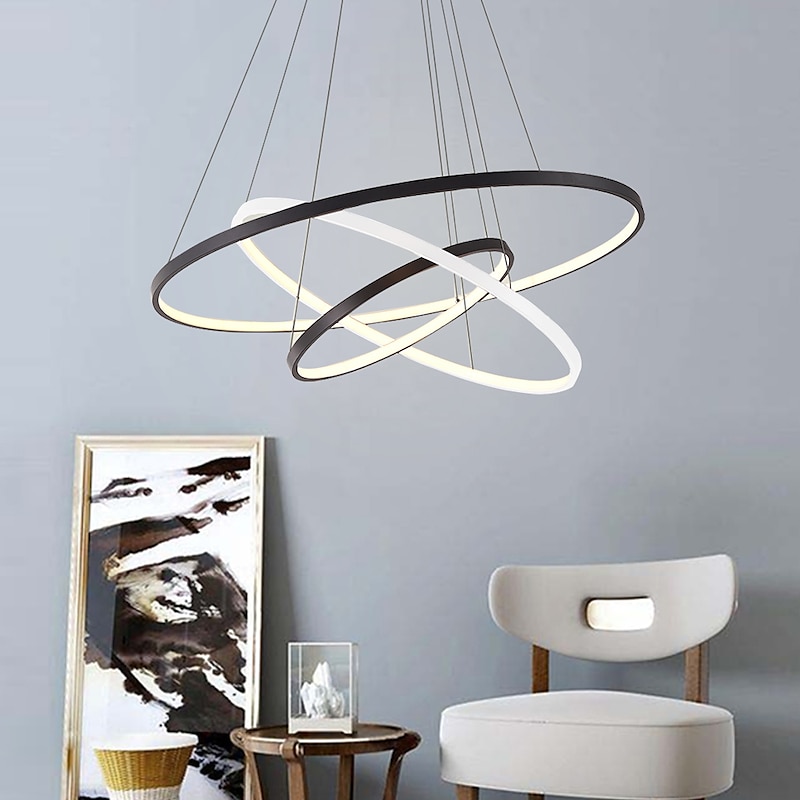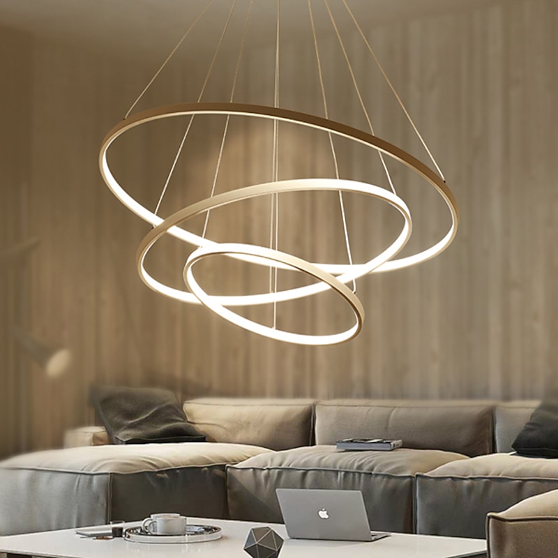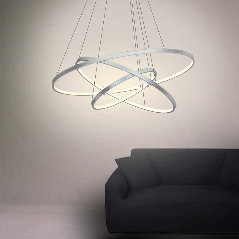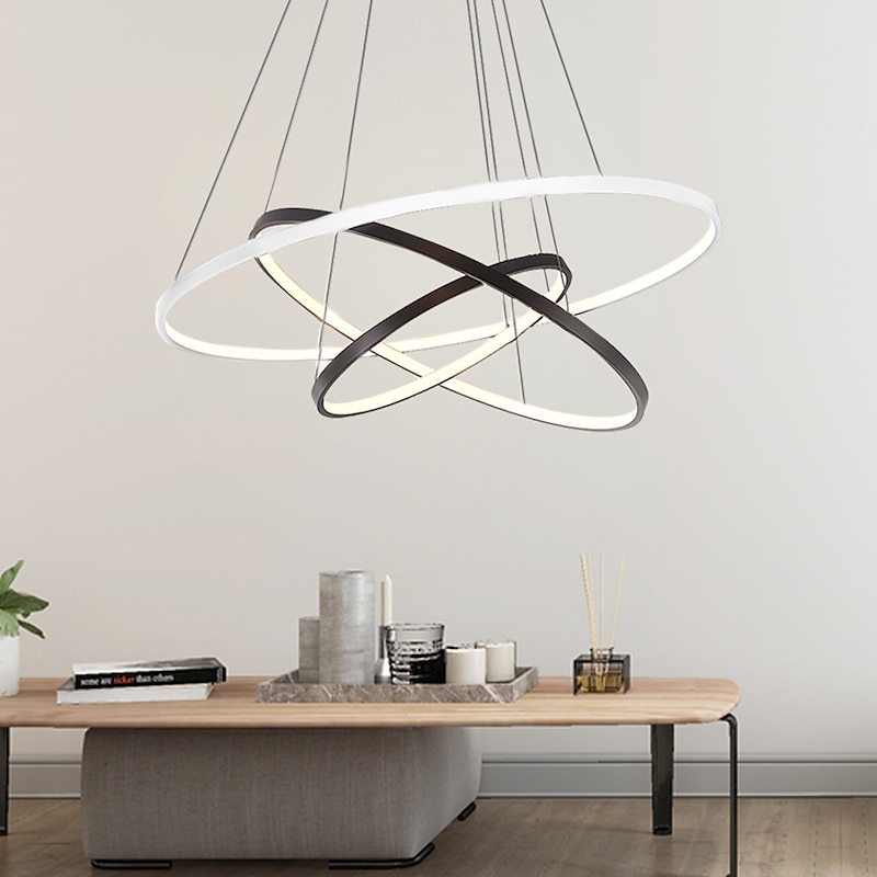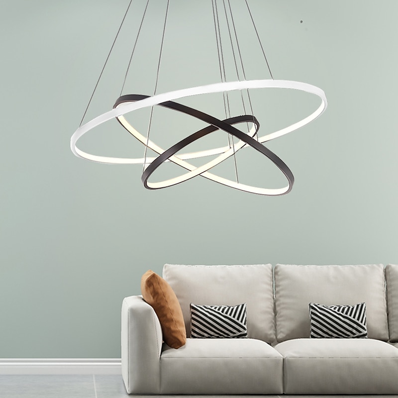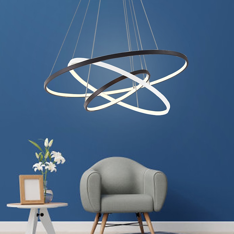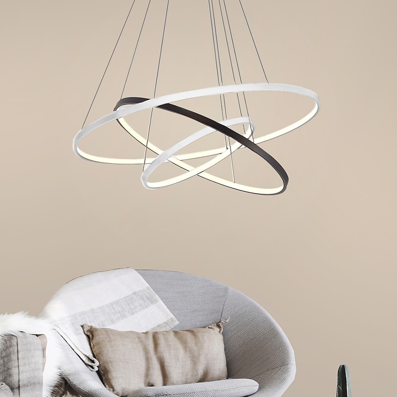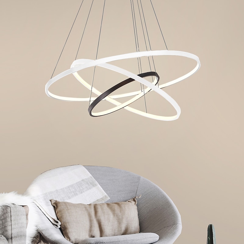 3-Light 80/60/40/20 cm LED Pendant Light Metal Acrylic Ring Circle Design Dimmable Painted Finishes Modern 90W/113W 3-Rings 4-Rings ONLY DIMMABLE WITH REMOTE CONTROL 8