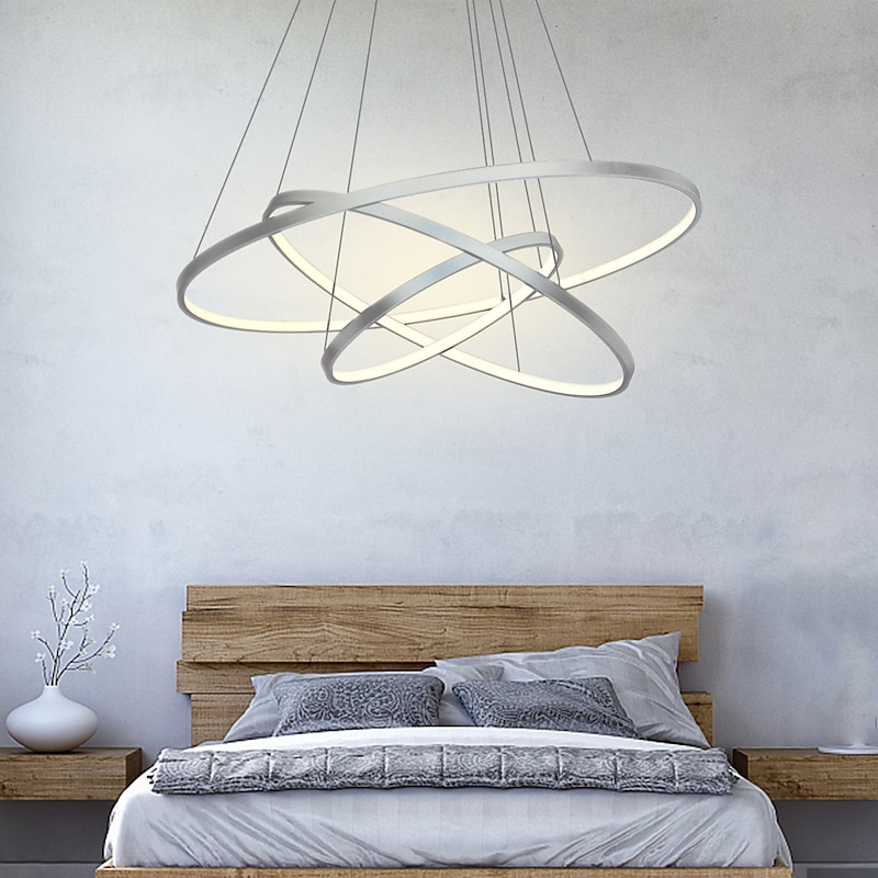 3-Light 80/60/40/20 cm LED Pendant Light Metal Acrylic Ring Circle Design Dimmable Painted Finishes Modern 90W/113W 3-Rings 4-Rings ONLY DIMMABLE WITH REMOTE CONTROL 29