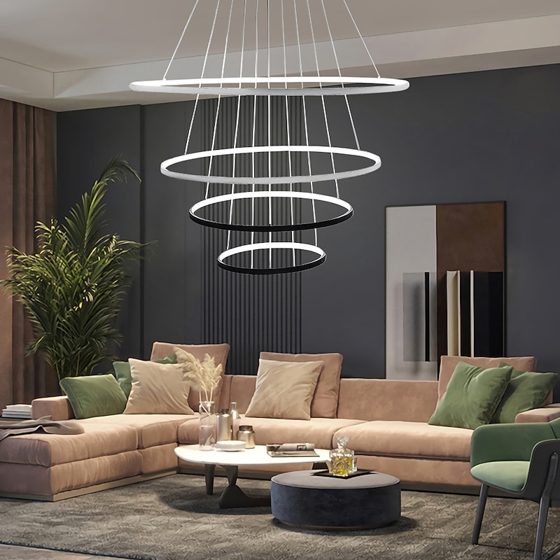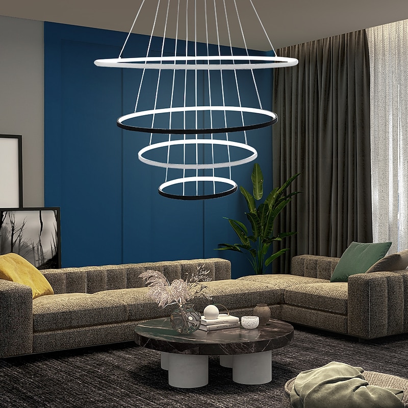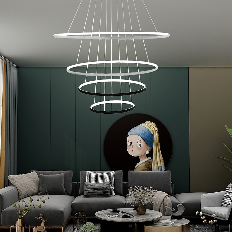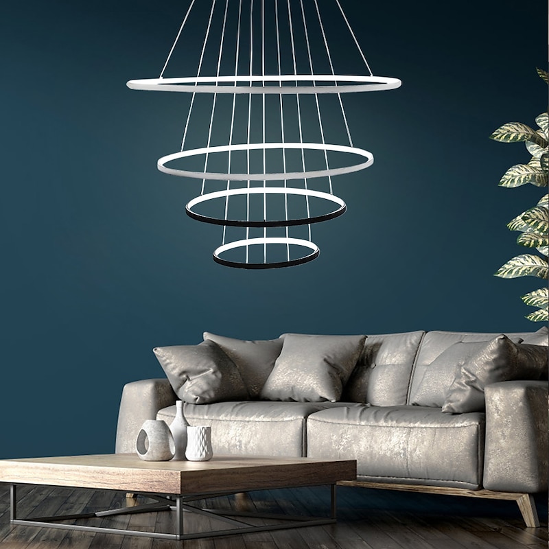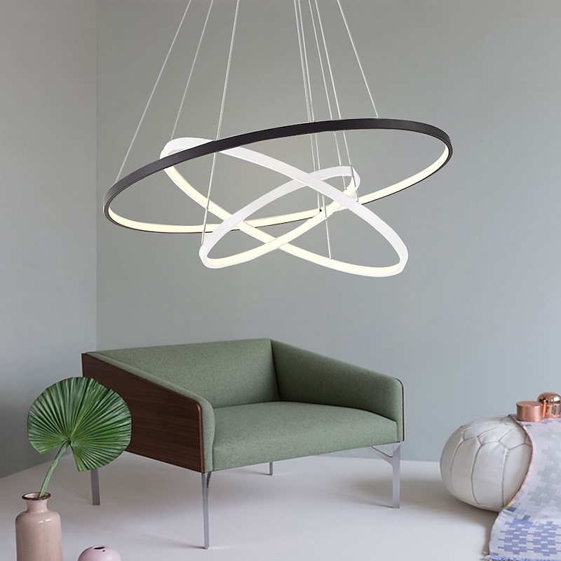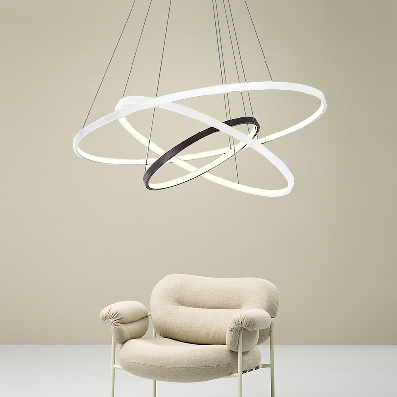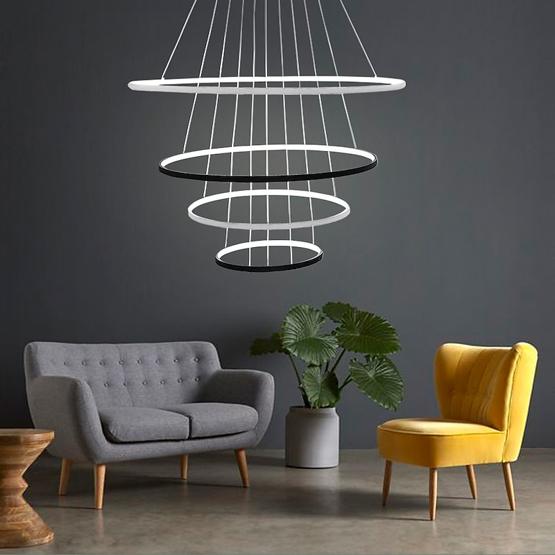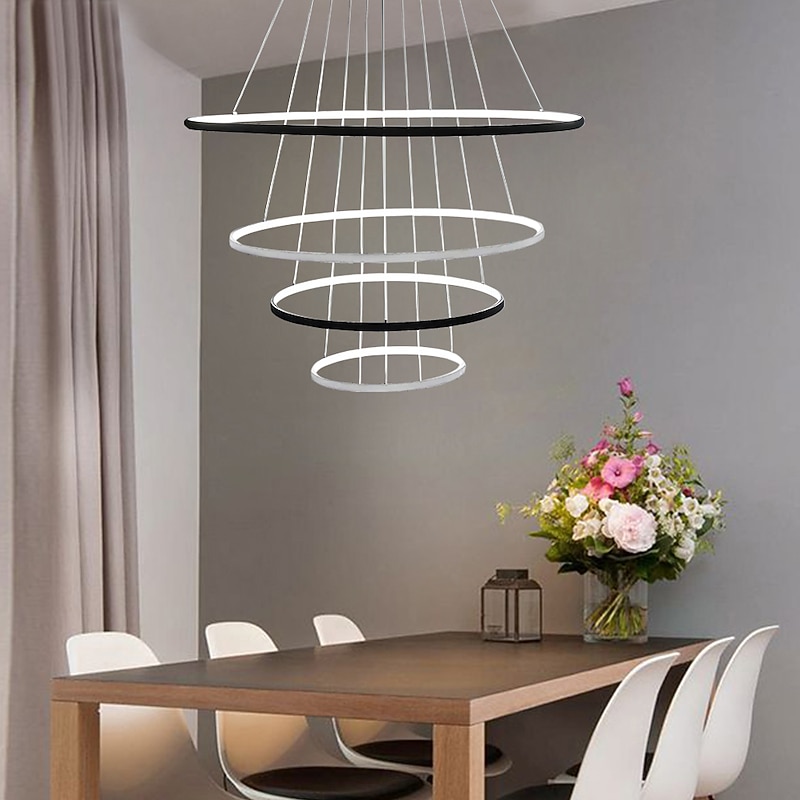 3-Light 80/60/40/20 cm LED Pendant Light Metal Acrylic Ring Circle Design Dimmable Painted Finishes Modern 90W/113W 3-Rings 4-Rings ONLY DIMMABLE WITH REMOTE CONTROL 11