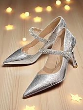 More information about Women's Gold Metallic High Heel Pumps - Pointed Toe Dress Shoes with Pearl Rhinestone Strap for Formal Occasions & Christmas Parties