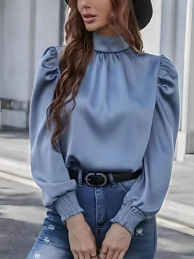 More information about Women's Shirt Elegant Dressy Satin Solid Color Elegant Casual Long Sleeve Turtleneck Regular Tops Wedding Guest Work Ruched Blue Rose Pink Summer Spring