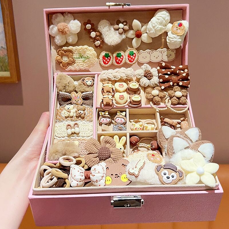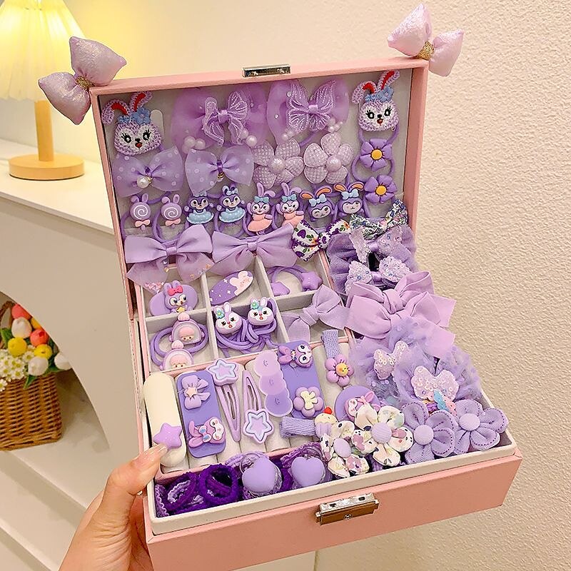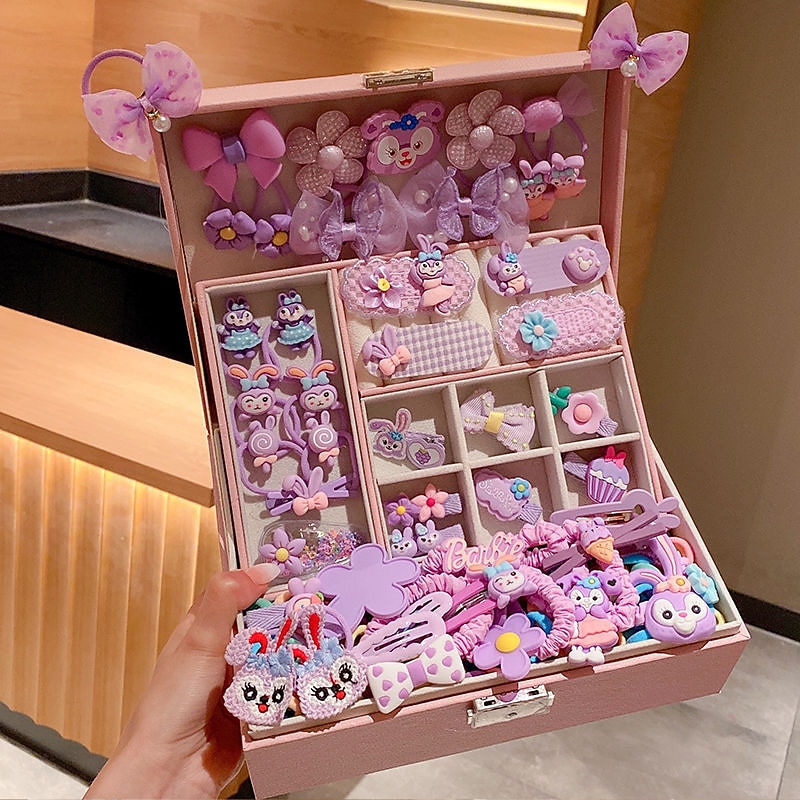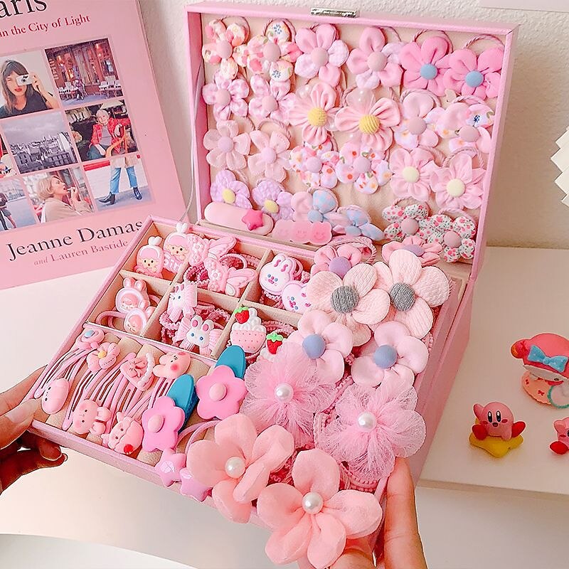 Korean Version Of Children's Pink Hair Accessories Gift Box Set Girl Princess Hair Card Girl Headwear Baby Jewelry Birthday 19