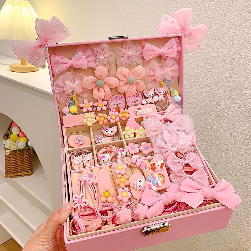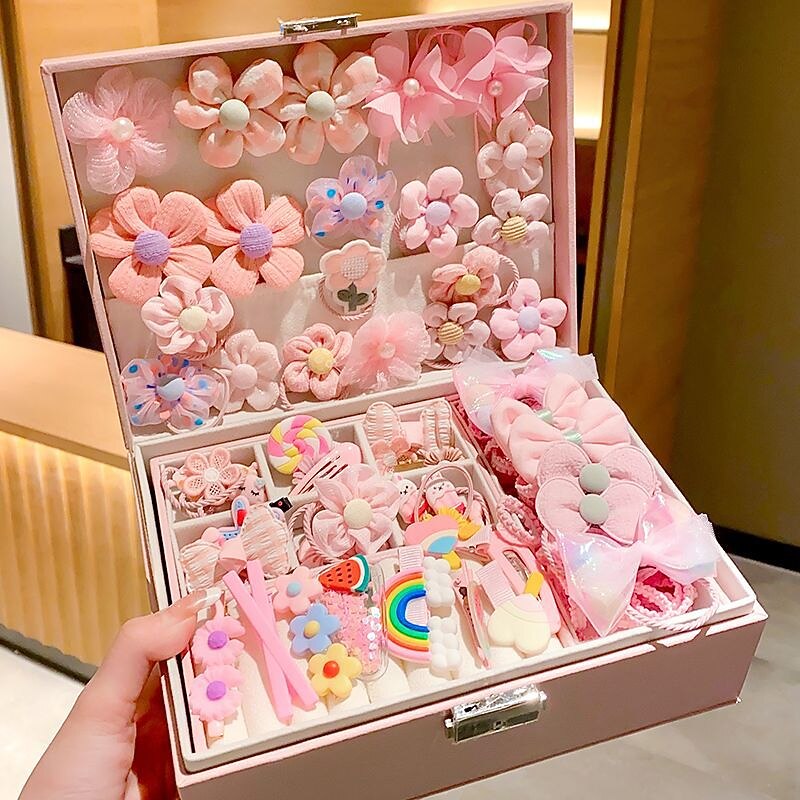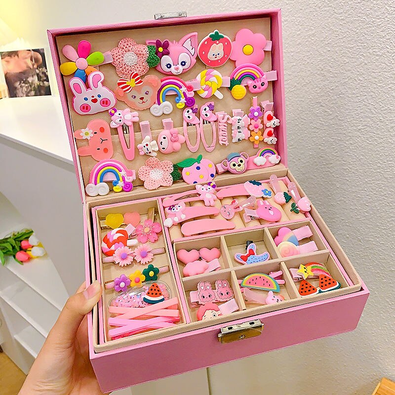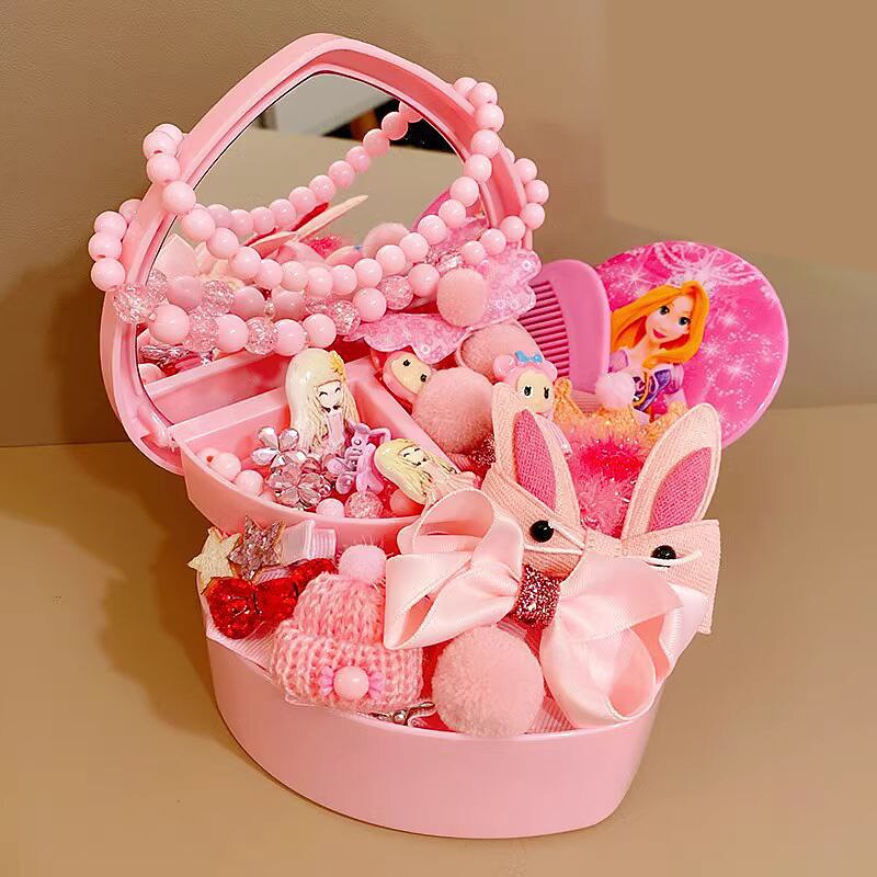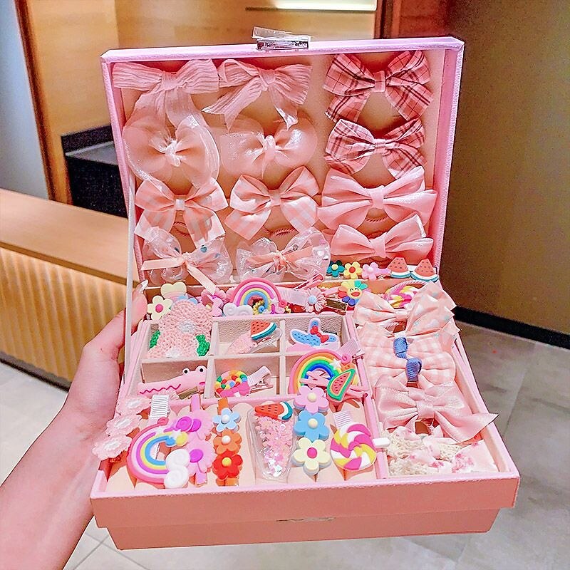 Korean Version Of Children's Pink Hair Accessories Gift Box Set Girl Princess Hair Card Girl Headwear Baby Jewelry Birthday 23