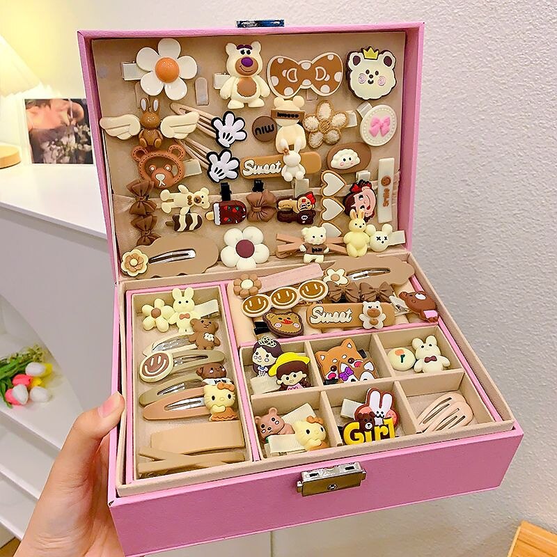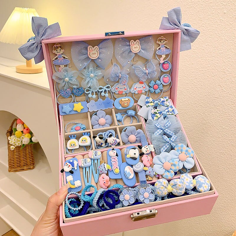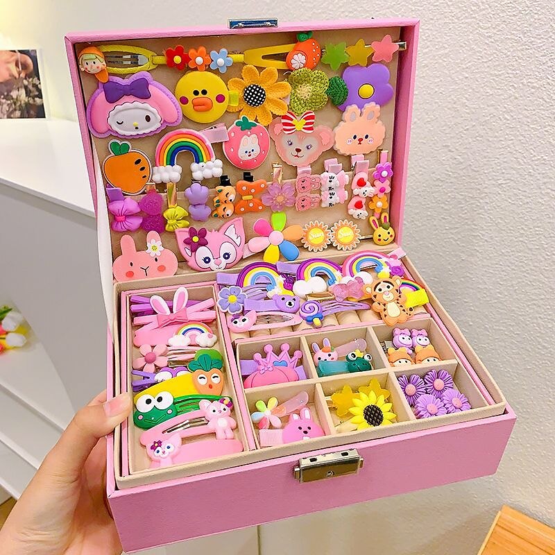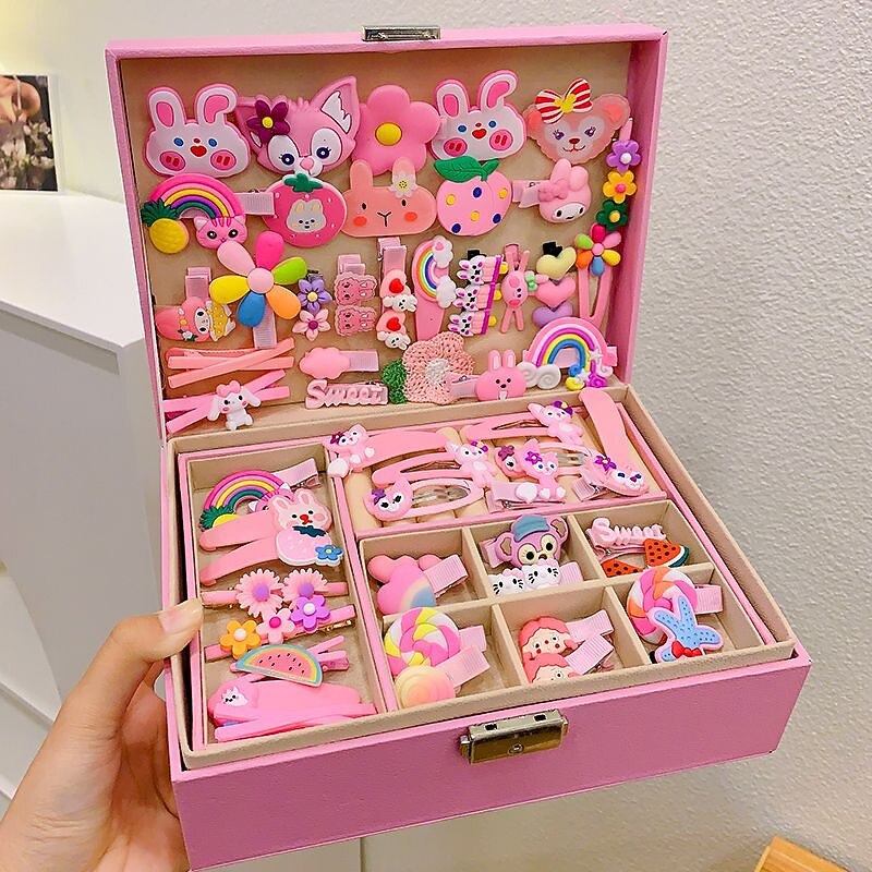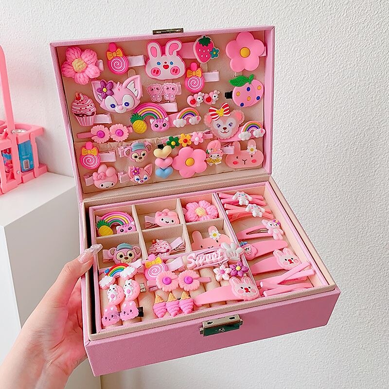 Korean Version Of Children's Pink Hair Accessories Gift Box Set Girl Princess Hair Card Girl Headwear Baby Jewelry Birthday 23