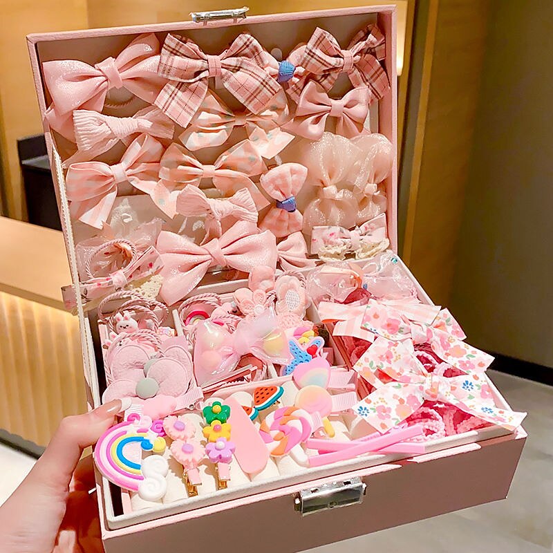 Korean Version Of Children's Pink Hair Accessories Gift Box Set Girl Princess Hair Card Girl Headwear Baby Jewelry Birthday 24