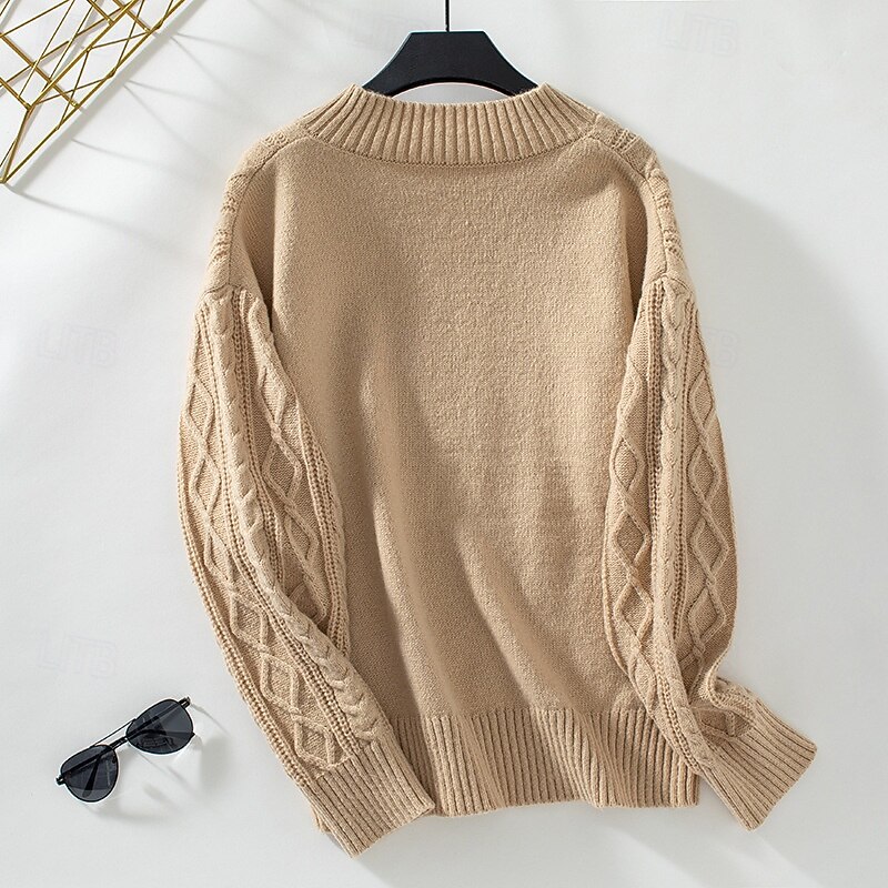 More information about Women's Sweater Elegant Vintage Fashion Solid Color Cable Crew Neck Knitted Long Sleeve Long Tops Knit Work Brown Khaki Fall Winter