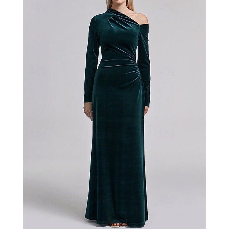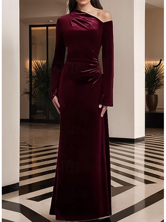 More information about Black Tie Stretch Velvet Sheath / Column Evening Gown Elegant Dress Formal Wedding Floor Length Long Sleeve One Shoulder with Pleats 2025
