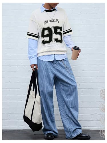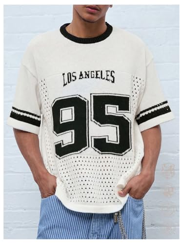 More information about WDIRARA Men's Number Letter Graphic Sweater Crewneck Half Sleeve Pullovers Knit Top