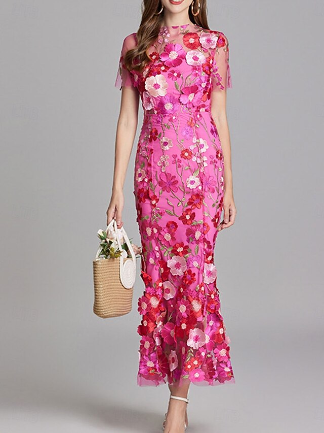 Mermaid Party Dresses Vintage Dress Wedding Wedding Guest Ankle Length Short Sleeve Crew Neck Tulle with Embroidery Dresses 6