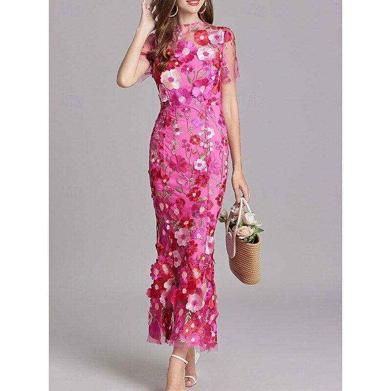Mermaid Party Dresses Vintage Dress Wedding Wedding Guest Ankle Length Short Sleeve Crew Neck Tulle with Embroidery Dresses 8