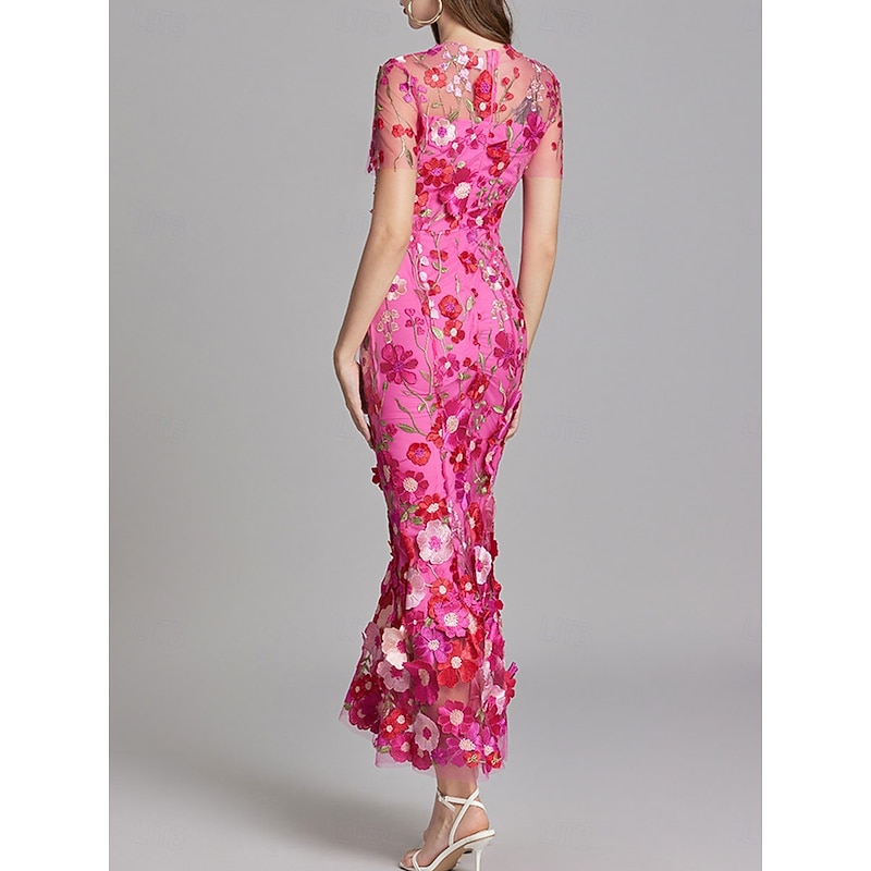 Mermaid Party Dresses Vintage Dress Wedding Wedding Guest Ankle Length Short Sleeve Crew Neck Tulle with Embroidery Dresses 3