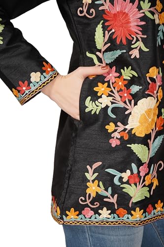 BATIN Short Kashmiri Embroidery Silk Jacket, Kashmiri Jacket for Women, Floral Embroidered Coat, Multicolour Short Coat 5