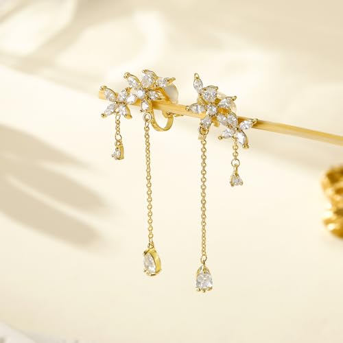 Why Choose Clip on Earrings for Women Cubic Zirconia 925 Sterling Silver Plated Long Tassel Dangle Drop Clip Earrings Non Pierced Earrings for Women Jewelry Gifts Wedding Party?