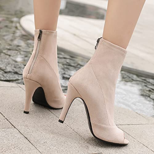 • [Item Features]: Women's high heel stiletto peep toe ankle booties sandals, faux suede upper material, comfortable and breathable,back zipper design easy slip on and off. Supply black and apricot 2 colors to choose, runs true to size, keep you comfy in all days.