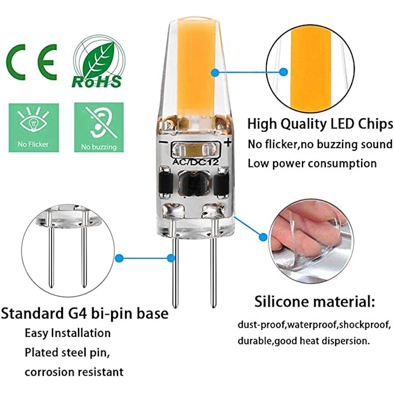 $31.78 - 10pcs G4 LED Dimmable Bulb AC/DC12-24V 2w 3w 1505 COB LED Light Replace Traditional of Halogen Bulb for Spotlight Chandelier 2025. Shop for cheap LED Bi-pin Lights online? Buy at lightinthebox.com on sale today!