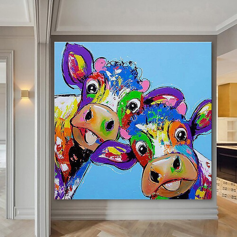 More information about Nursery Oil Painting Hand Painted Animals Abstract Modern Contemporary Stretched Canvas With Stretched Frame