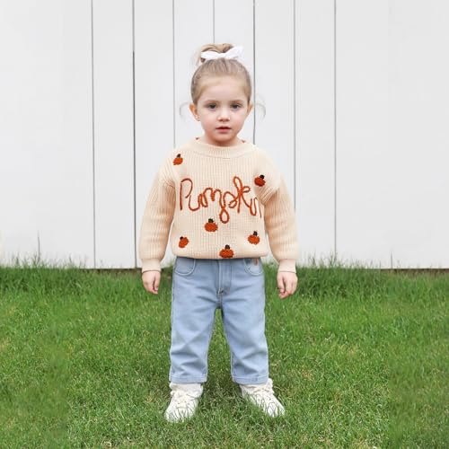 FOMOYUU Baby Girl Boy Knit Sweater Halloween Outfit Embroidery Warm Crewneck Long Sleeve Tops Fall Winter Clothes 7