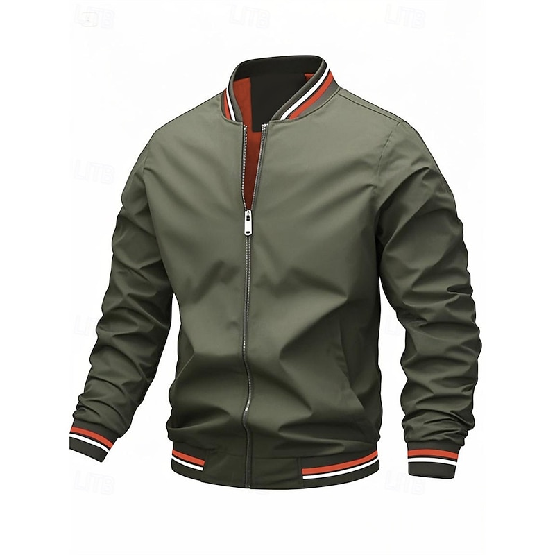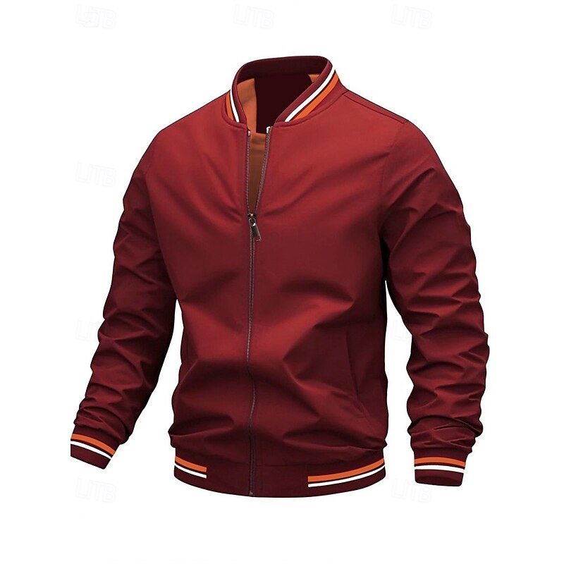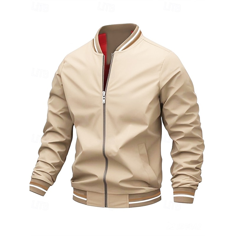 More information about Men's Lightweight Jacket Casual Jacket Vacation Daily Breathable Patchwork Pocket Spring Fall Stripe Fashion Classic Stand Collar Regular Black White Wine Navy Blue Khaki Jacket