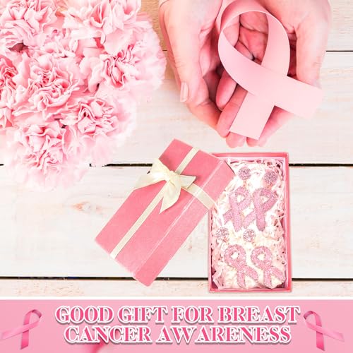 2 Pairs Glitter Breast Cancer Awareness Earrings Ribbon Earrings for Women Breast Cancer Survivor Support Gifts 2