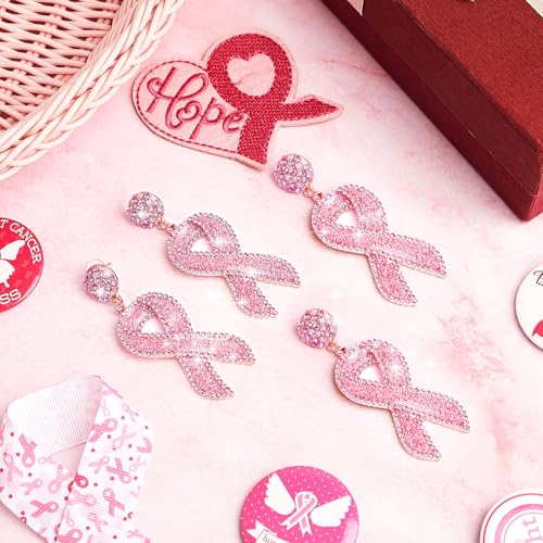 HOT ! 2 Pairs Glitter Breast Cancer Awareness Earrings Ribbon Earrings for Women Breast Cancer Survivor Support Gifts