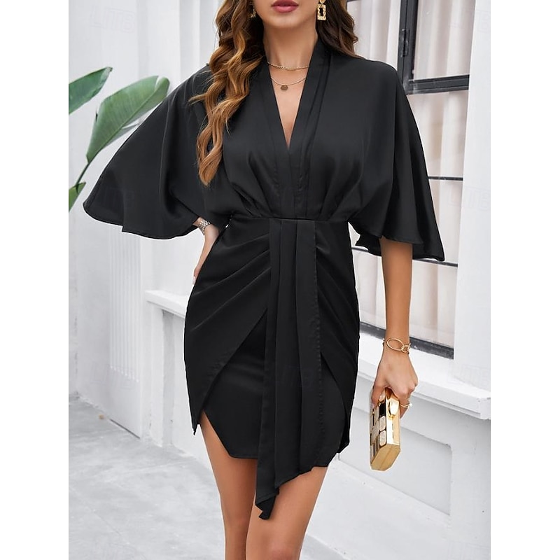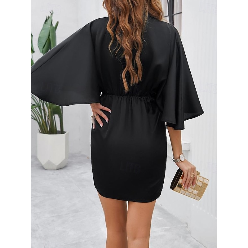 More information about Women's Mini Dress Black Dress Cocktail Dress Formal Dress Plain Dress Vintage Casual Street Date Loose Fit Plain Half Sleeve V Neck Black White Green Summer Spring
