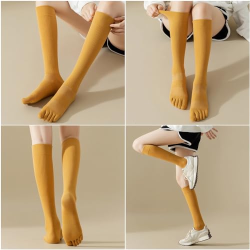 Knee High Toe Socks for Women - 4 Pairs Five Toe Knee High Boot Socks for Yoga, Pilates, Outdoor Sport, Athletic 5
