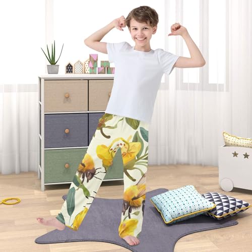 HOT ! ZZXXB Bee Flower Boys Long Pants Soft Trousers Elastic Waist Kids Lounge Bottoms with Pockets S-XL