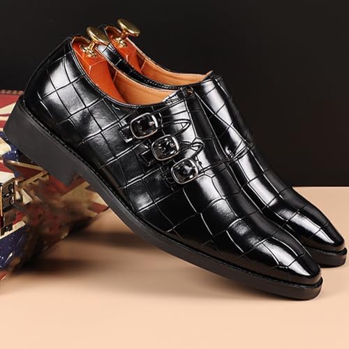 Men's Printed Oxford Dress Shoes, Stylish Metal Buckle Comfortable Slip-on Pointed Toe Dress Shoes Business Wedding Slip-on Men's Loafers (Black,7) 7