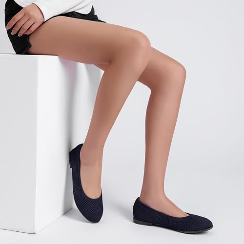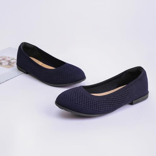 sought-after ! Saidoteto Women's Wide Ballet Flats - cushy Round Toe Knit Slip-On Shoes, Casual Office Dress Flats for Work. Navy Size 10 WFT240810-01