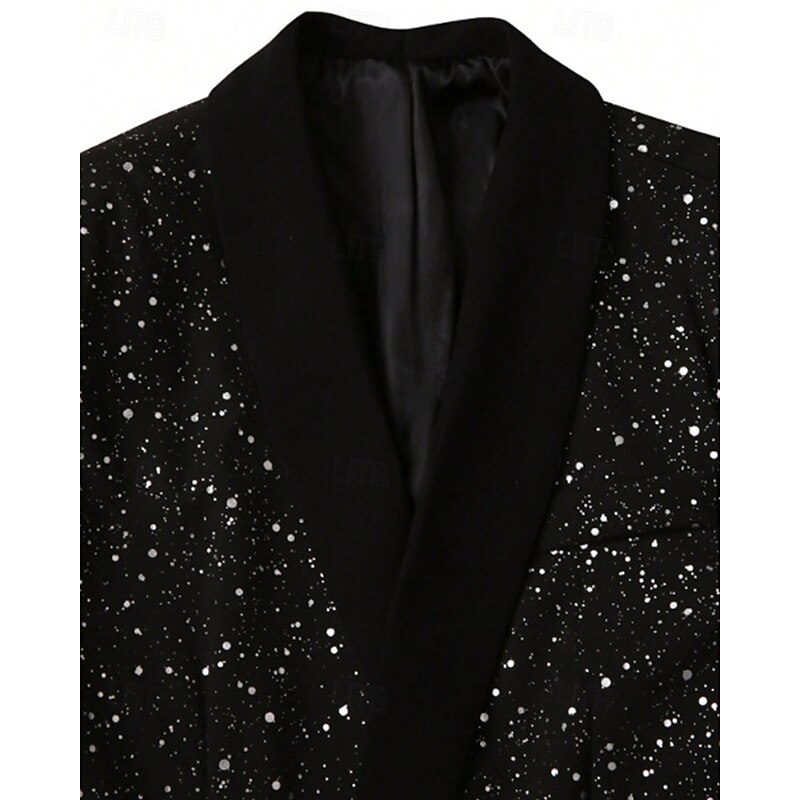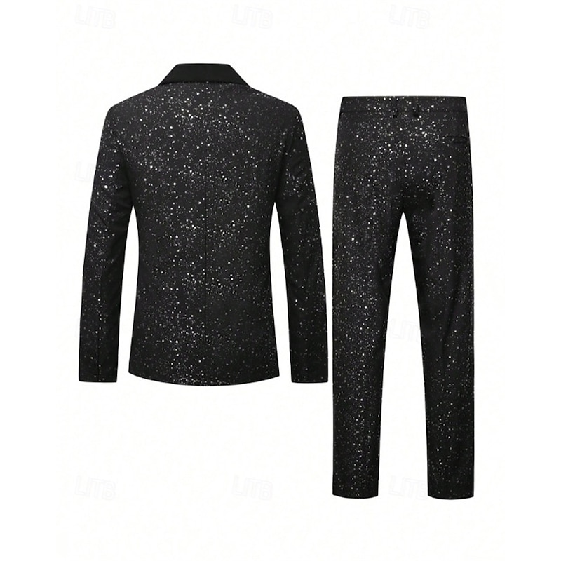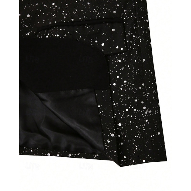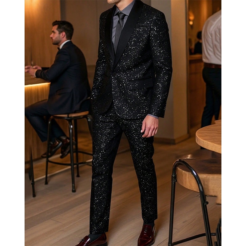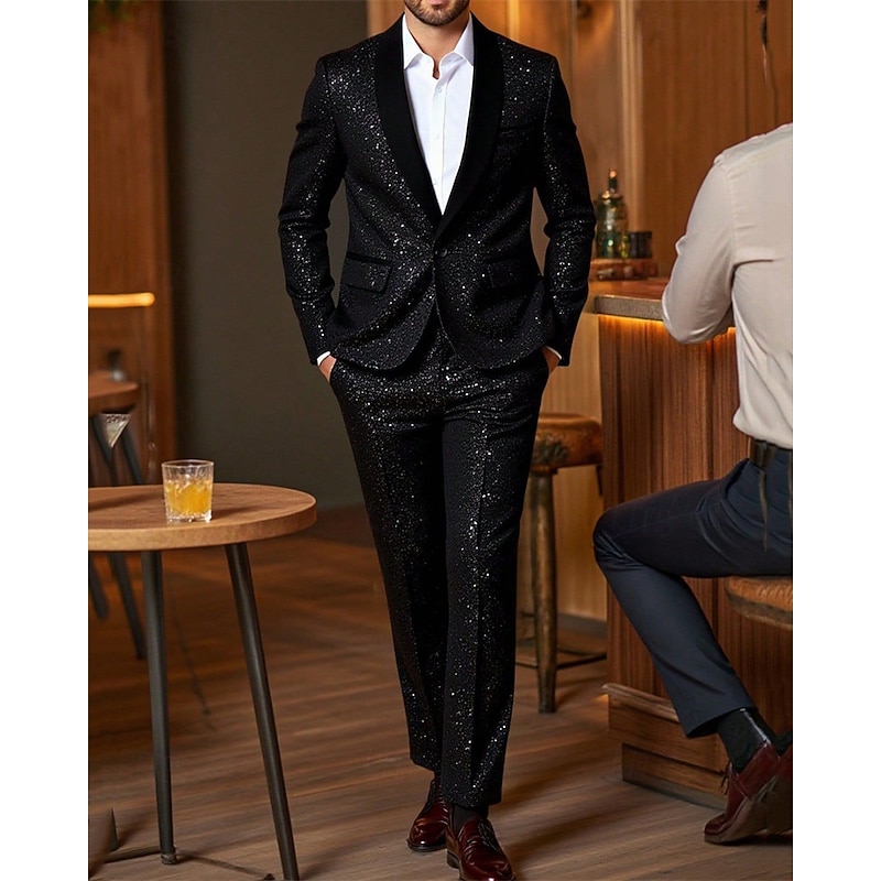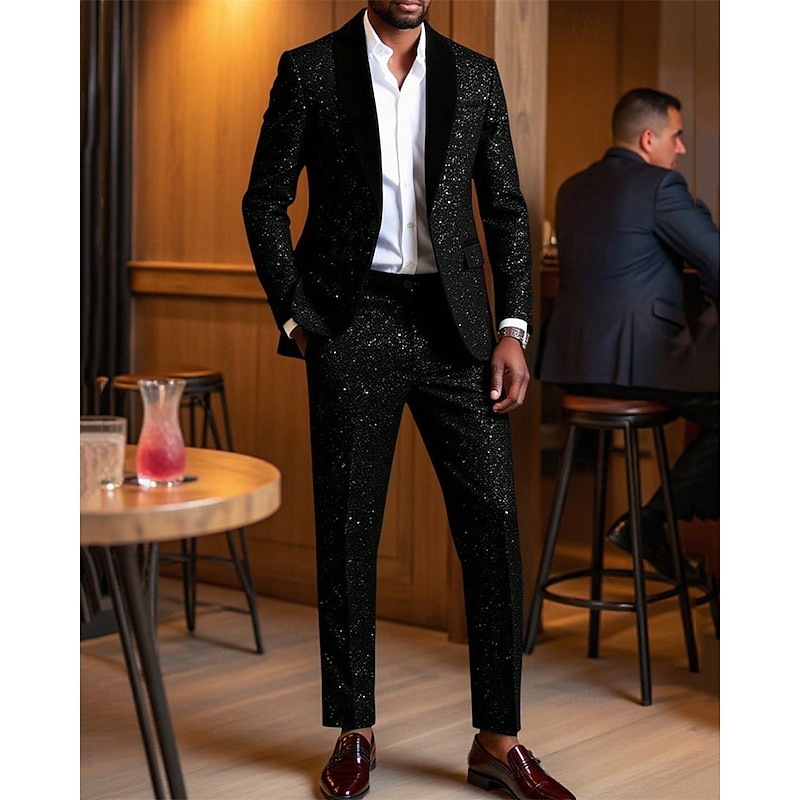More information about Men's Blazer Set Business Cocktail Party Wedding Party 2 Piece Fashion Casual Spring Fall Polyester Plain Pocket Glitter Comfortable Single Breasted Blazer Black