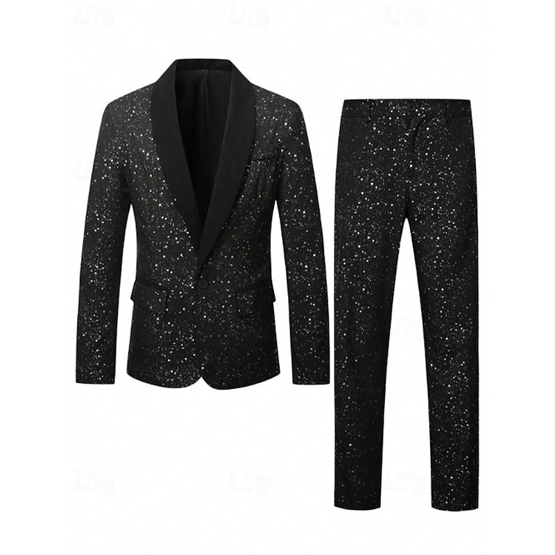 HOT ! Men's Blazer Set Business Cocktail Party Wedding Party 2 Piece Fashion Casual Spring Fall Polyester Plain Pocket Glitter Comfortable Single Breasted Blazer Black