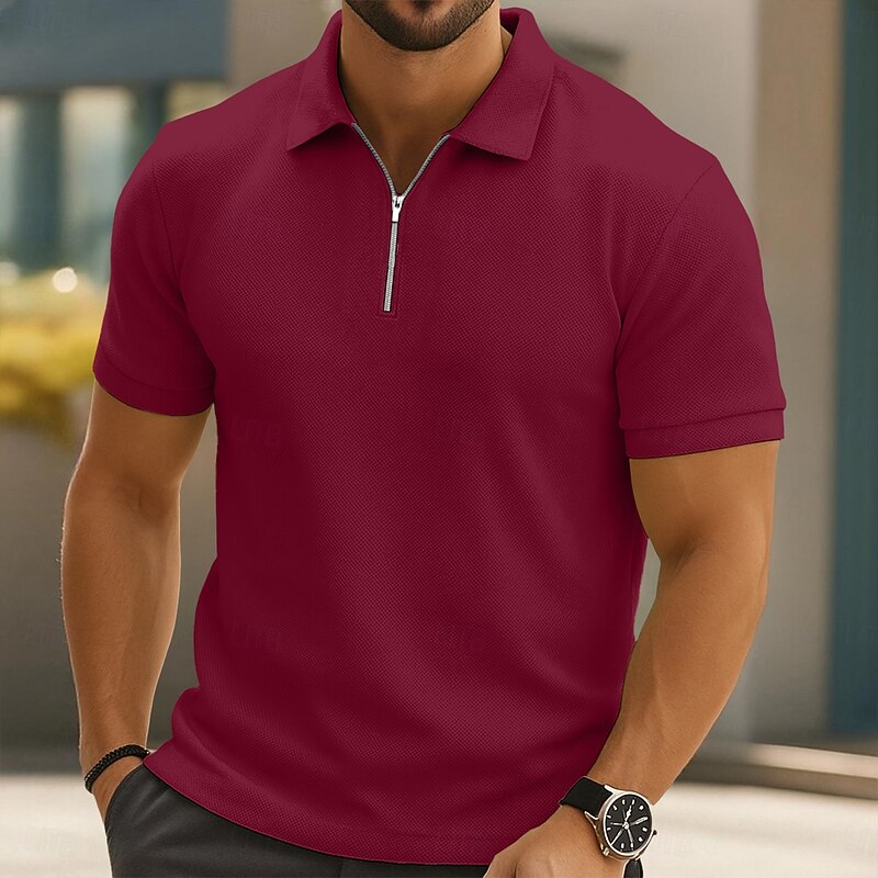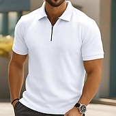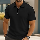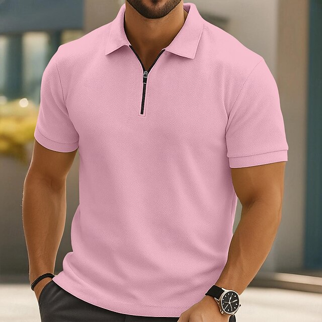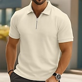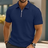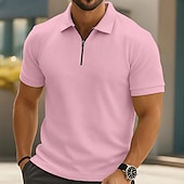 More information about Men's Quarter Zip Polo Golf Shirt Daily Holiday Lapel Quarter Zip Short Sleeve Fashion Basic Plain Spring & Summer Regular Fit Black White Pink Wine Navy Blue Royal Blue Quarter Zip Polo