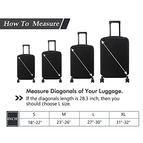 • 3 sizes: M: fits 23-26 inch luggage, L: fits 27-30 inch luggage, XL: fits 31-32 inch luggage. Please measure your suitcase before purchasing. Only luggage cover, suitcase not included.