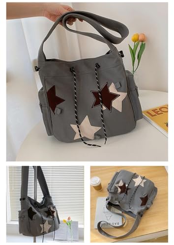 HOT ! Y2k Star Canvas Messenger Bag Cute Kawaii Messenger Bag Aesthetic Star Shoulder Bag Large Hobo Tote Bag