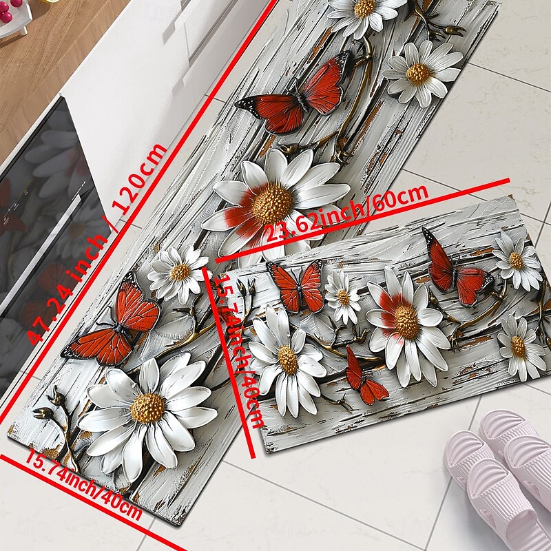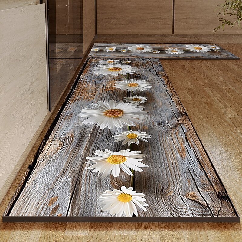 HOT ! Wooden Daisy Pattern Kitchen Rug Area Rug Mat Non-Slip Oil Proof Floor Mat Livingroom Rug Indoor Outdoor Mat Bedroom Decor Bathroom Mat Entrance Rug Door Mat