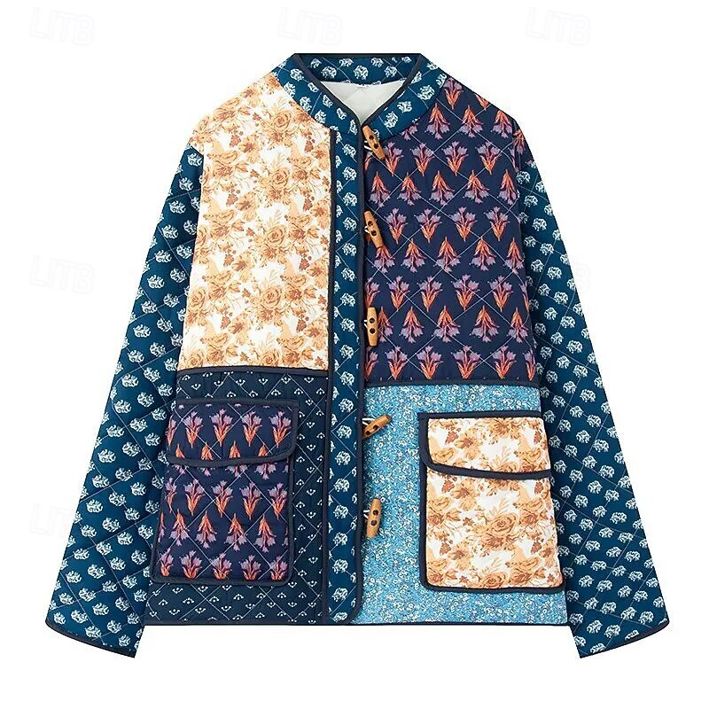 HOT ! Women's Puffer Jacket Quilted Jacket Casual Jacket Comfortable Breathable Pocket Buttons Casual Floral Vacation Street Casual Daily Wear Single Breasted Short Stand Collar Regular Fit Long Sleeve
