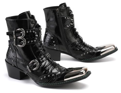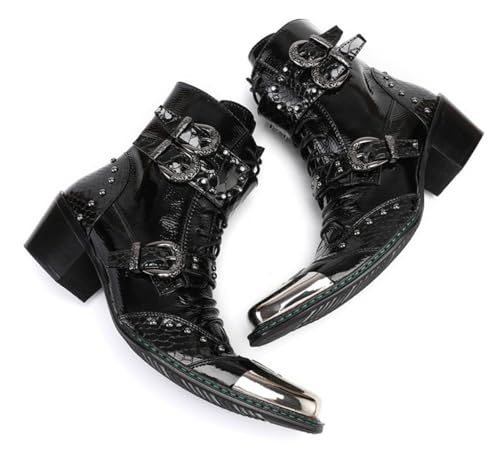 Santimon Mens Boots Casual Black Western Leather Fashion Square Toe Metal Tip Dress Ankle Boot 6