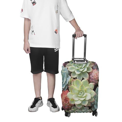 Green Succulents Luggage Cover, Washable Elastic Suitcase Cover Protector Fit 18-32 Inch Luggage 7