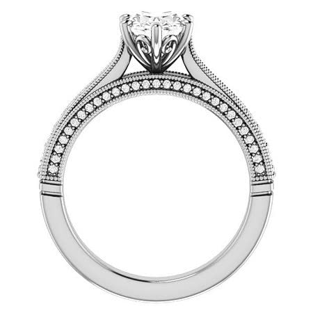 • Main Stone: Moissanite, Main Stone shape: Oval Brilliant Cut, Main Stone Color: Colorless, Main Stone Clarity: VVS1, Main Stone Luster: Excellent, Main Stone Weight: 2 CT Approx, Side Stone: Round Brilliant Cut, Side Stone Color/Clarity: White/VVS1, Side Stone Weight: 0.15 CT Approx, *** Description of Band:- Stone Shape: Round Brilliant Cut, Luster: Excellent, Stone Color/Clarity: White/VVS1, Stone Weight: 0.20 CT Approx, Type: Handmade Ring Set, Setting Type: Prong Setting