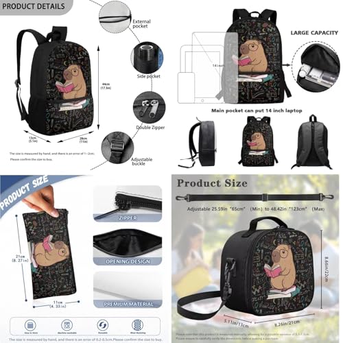 Cartoon Capybara Backpack for Boys Girls 3 Pack School Backpacks Set Reusable Lunch Box Pencil Bag Big Capacity Schoolbag with Side Pocket Adjustable Strap 4