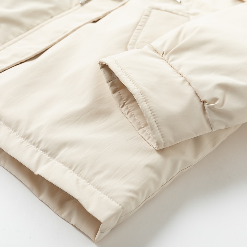 The jacket offers a regular fit with a long sleeve design, ensuring both style and practicality for everyday wear. It combines functionality with a simple, casual aesthetic, ideal for those looking for a timeless winter staple.