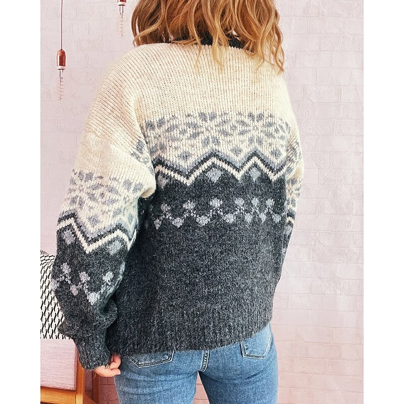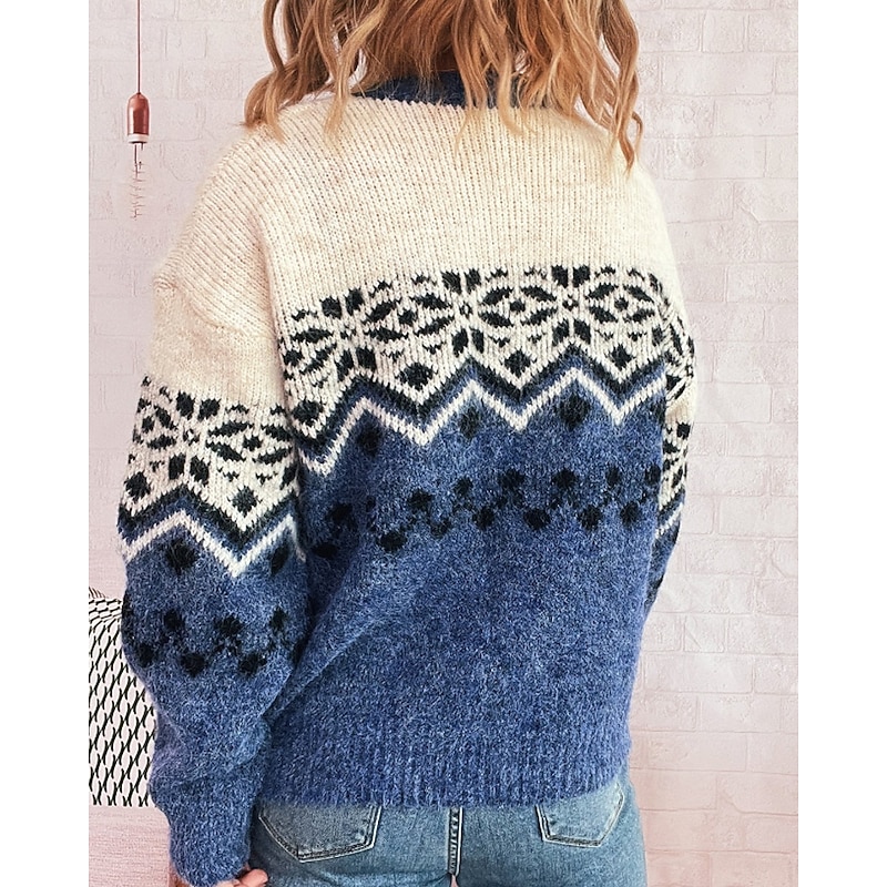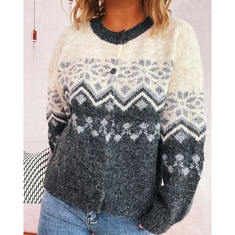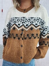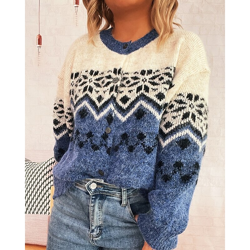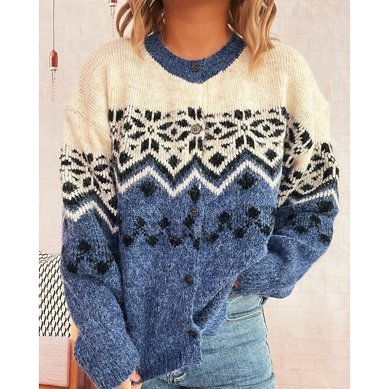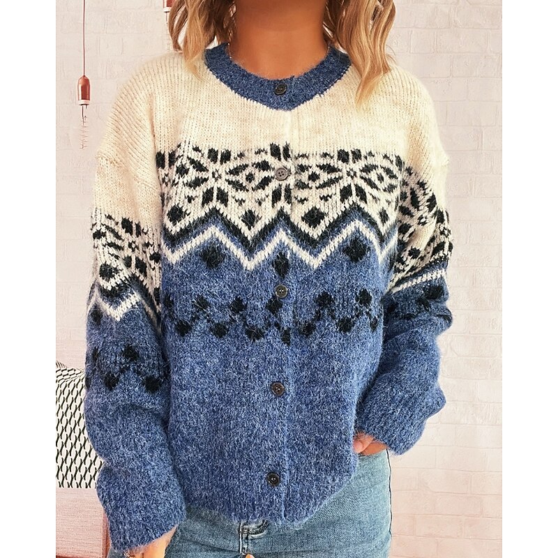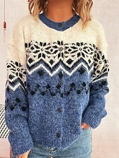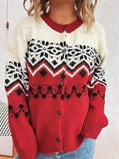 More information about Women's Sweater Cardigan Streetwear Casual Floral Ribbed Crew Neck Buttons Knitted Print Long Sleeve Regular Tops Knit Christmas Outdoor Holiday Red Blue Fall Winter