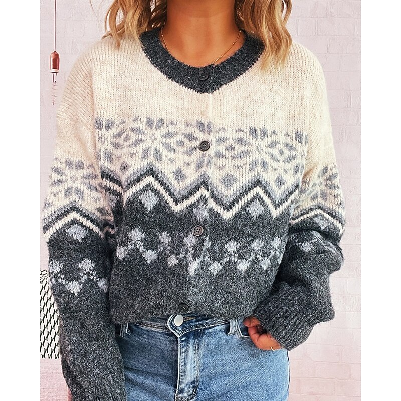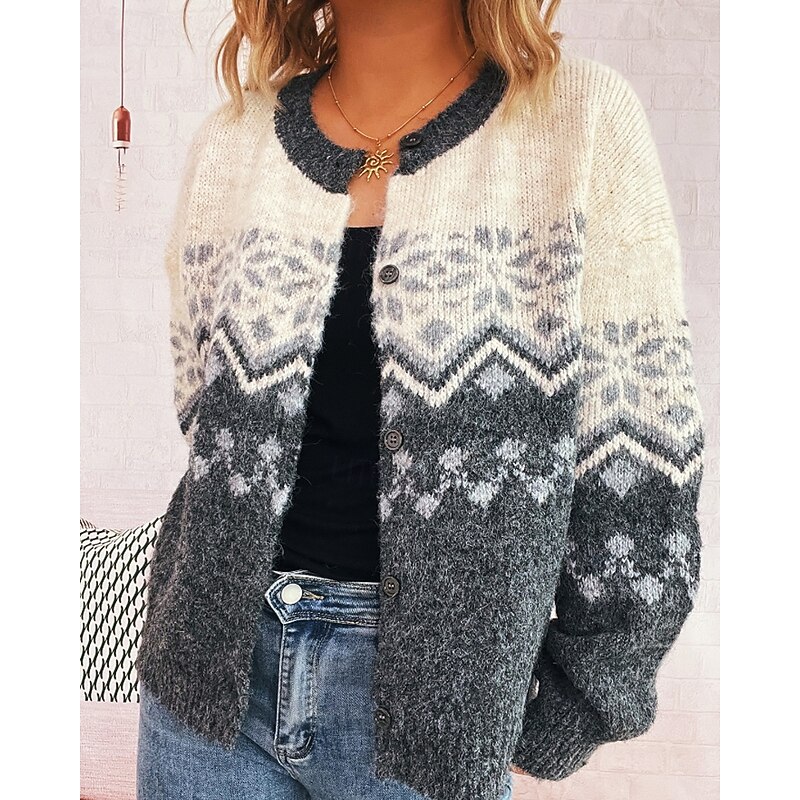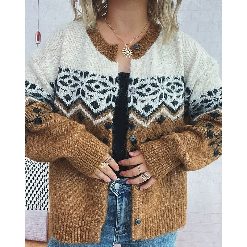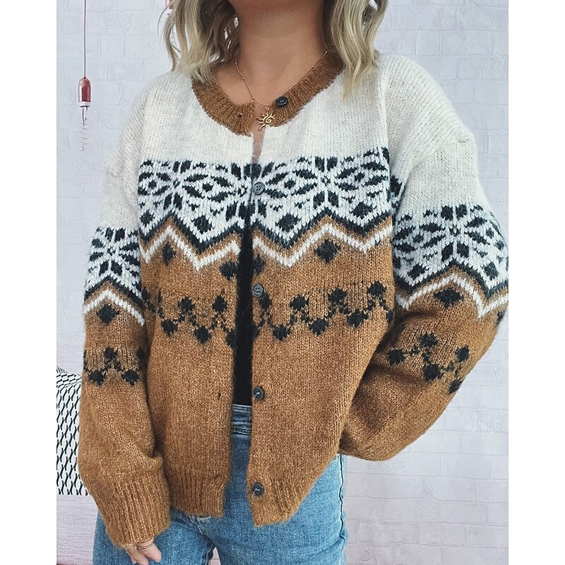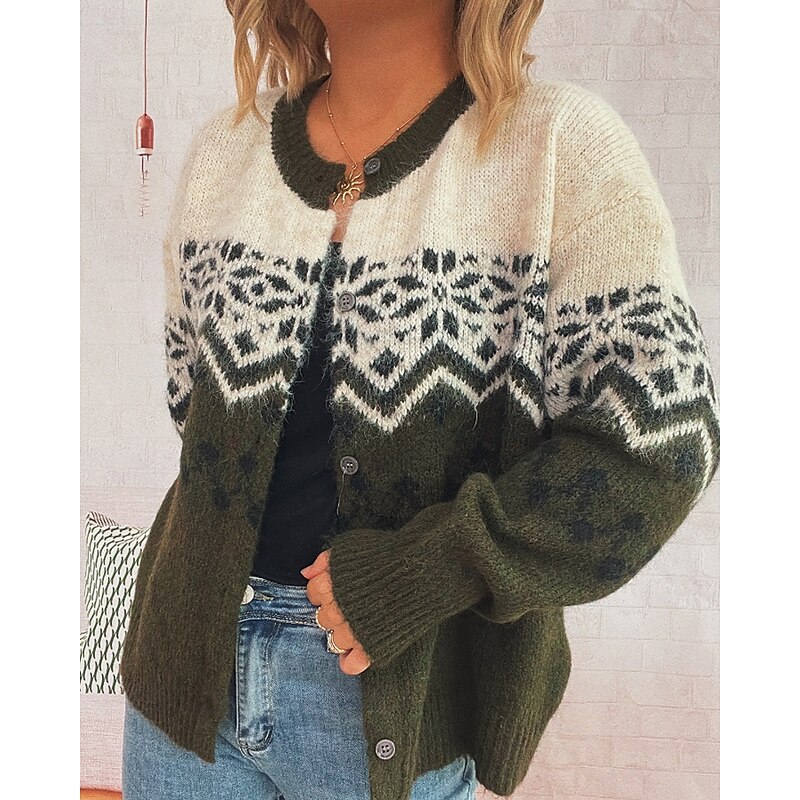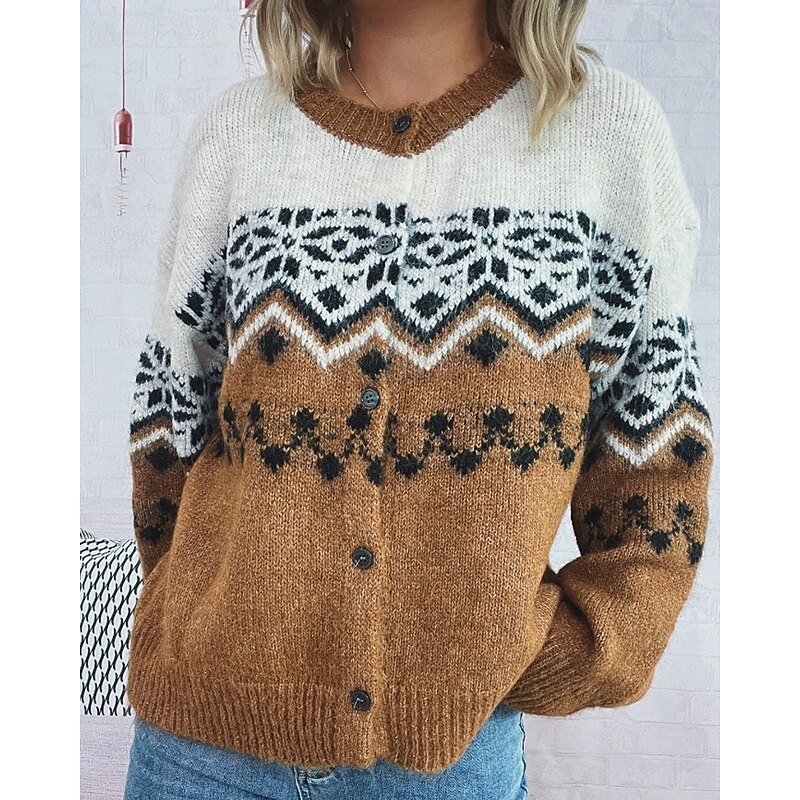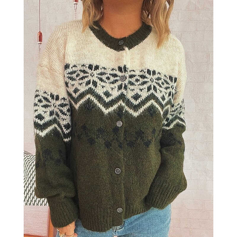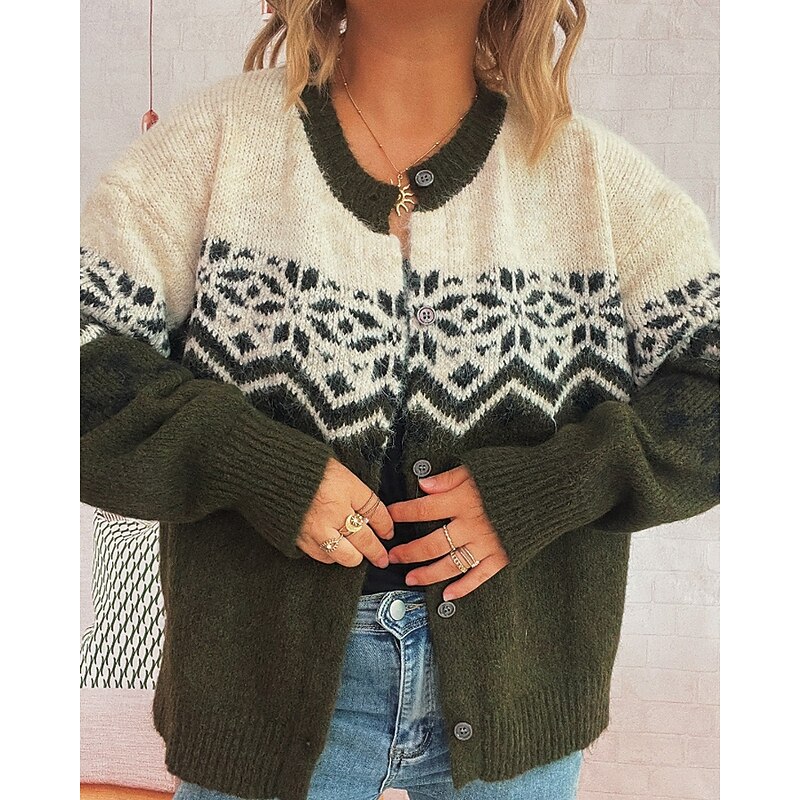 sought-after ! Women's Sweater Cardigan Streetwear Casual Floral Ribbed Crew Neck Buttons Knitted Print Long Sleeve Regular Tops Knit Christmas Outdoor Holiday Red Blue Fall Winter