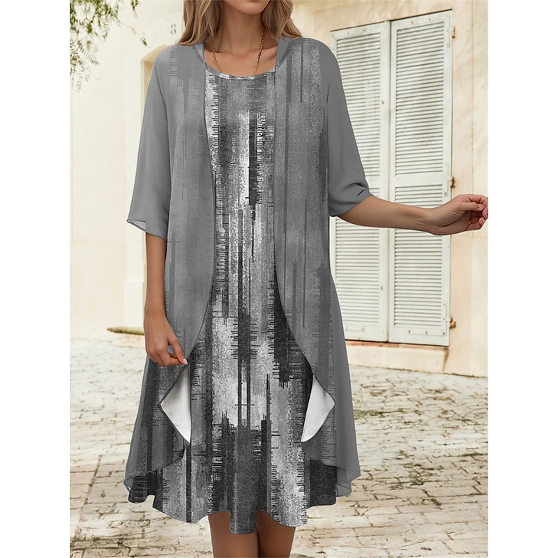 More information about Women's Graduation Dress Midi Dress Two Piece Dress Set Casual Dress Chiffon Dress Print Dress Fashion Modern Print Print Half Sleeve Crew Neck Outdoor Holiday Pink Blue Purple Spring Loose Fit