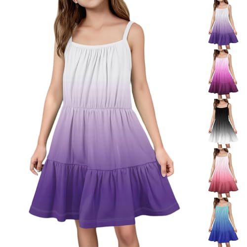 HOT ! Girls Summer Casual Dress A-Line Tiered Sundress, Sleeveless Strap Boho Flowy Beach Dress Gradient Ruffle Dresses