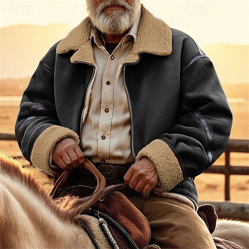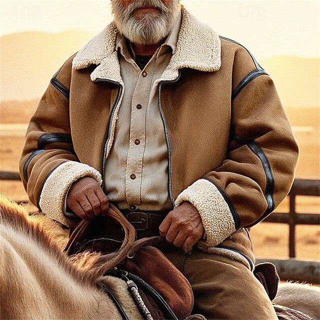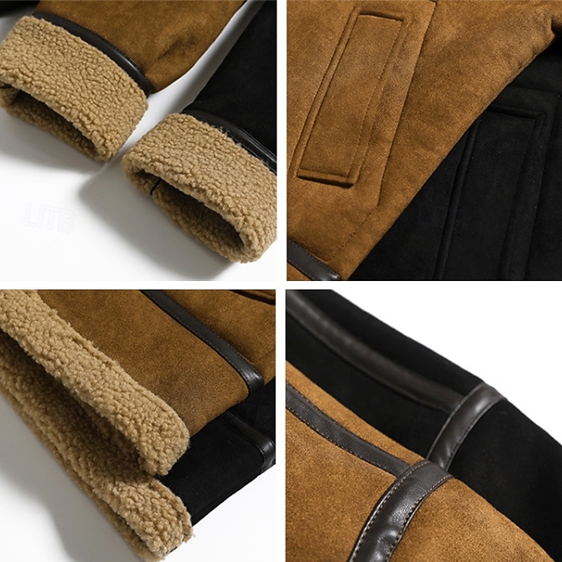 More information about Men's Faux Suede Jacket Winter Jacket Sherpa Jacket Vacation Daily Thermal Warm Pocket Fleece Fall Winter Plain Fashion Streetwear Lapel Regular Black Brown Jacket