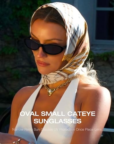 Narrow Retro Oval Sunglasses for Women Trendy Small Cateye Vintage Sun Glasses UV Protection FZN830 6