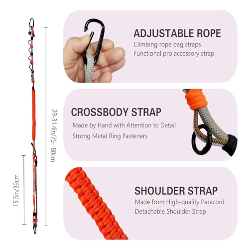 • Easy Attachment: The strategic placement of loops, hooks and carabiners allows for quick attachment, ensuring you can switch it between accessories effortlessly. Extra long paracord rope shoulder strap, and Colorful adjustable shoulder strap.
