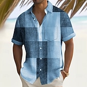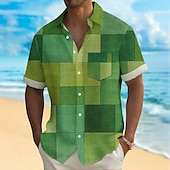 More information about Men's Geometric Color Block Shirt Summer Shirt Button Up Shirt Short Sleeve Fashion Casual Outdoor Vacation Dailywear Summer Spring Turndown 3D Print Collared Shirts Front One Pocket Blue Green
